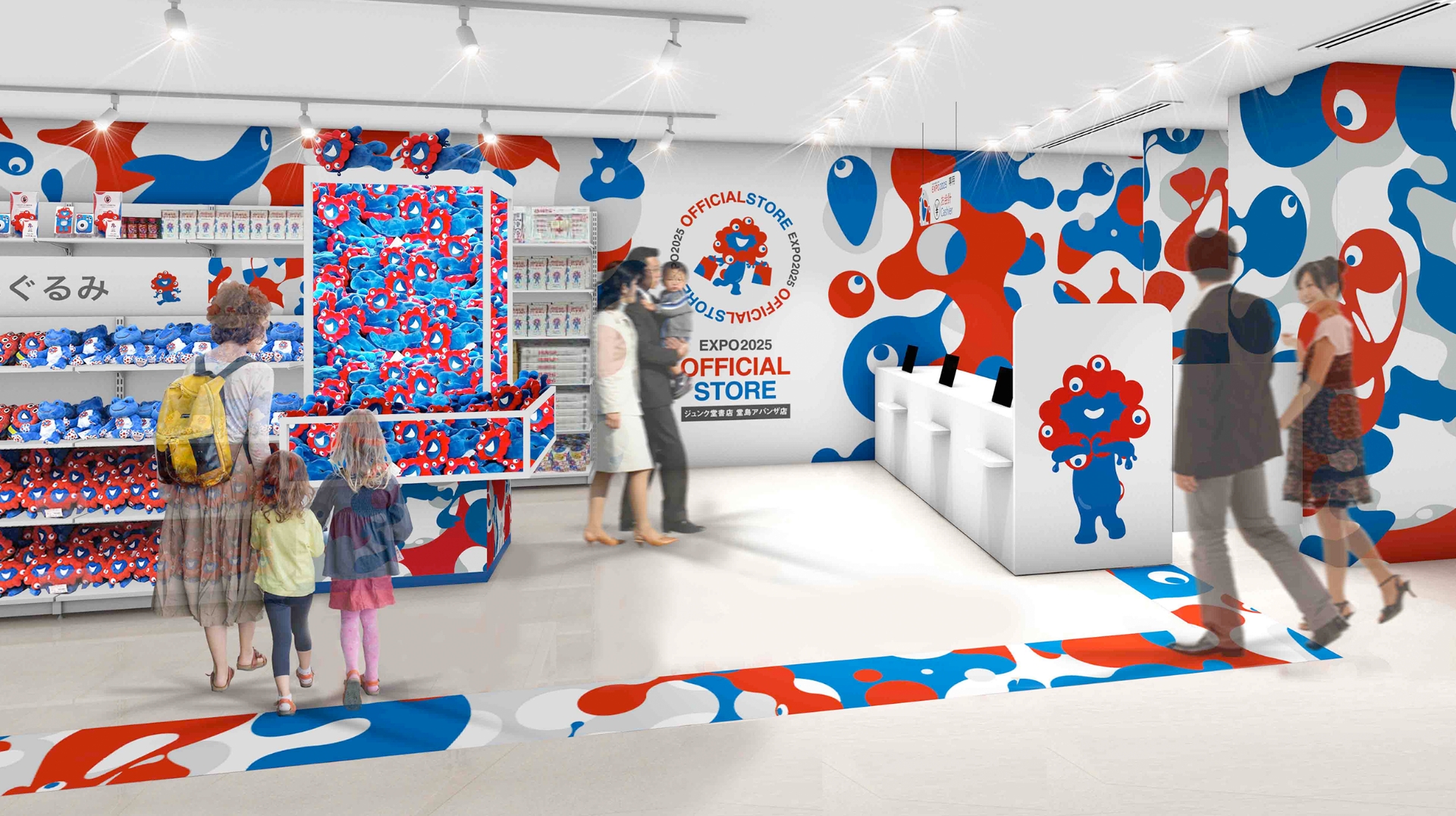 公式ライセンス商品の展開のみならず、オフィシャルストアとしては初の常設拠点となる「ミャクミャクふれあい広場」を新設!展示エリアや撮影スポットに加え不定期でのグリーティング撮影イベントを実施!